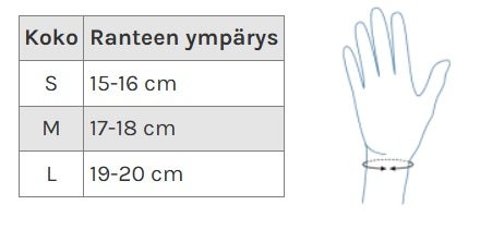 Vihje, jos mittasi osuu kahden koon rajalle, harkitse silloin isompaa kokoa. Varsinkin miehillä tuki saataa puristaa liikaa kättä siten tuoden epämielyttävän puristavan tunteen.